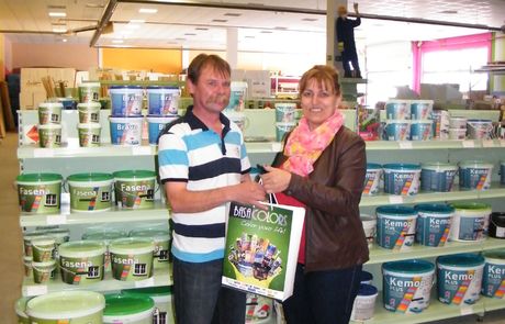 A nyertes Trungel Tibor egyéni vállalkozó lett, akinek a mai napon a Basacolors elküldte nyereményét, és a Molnár Elefánt Barkácsáruházba azt át is vette Molnár Ferencnétől a cég tulajdonosától.