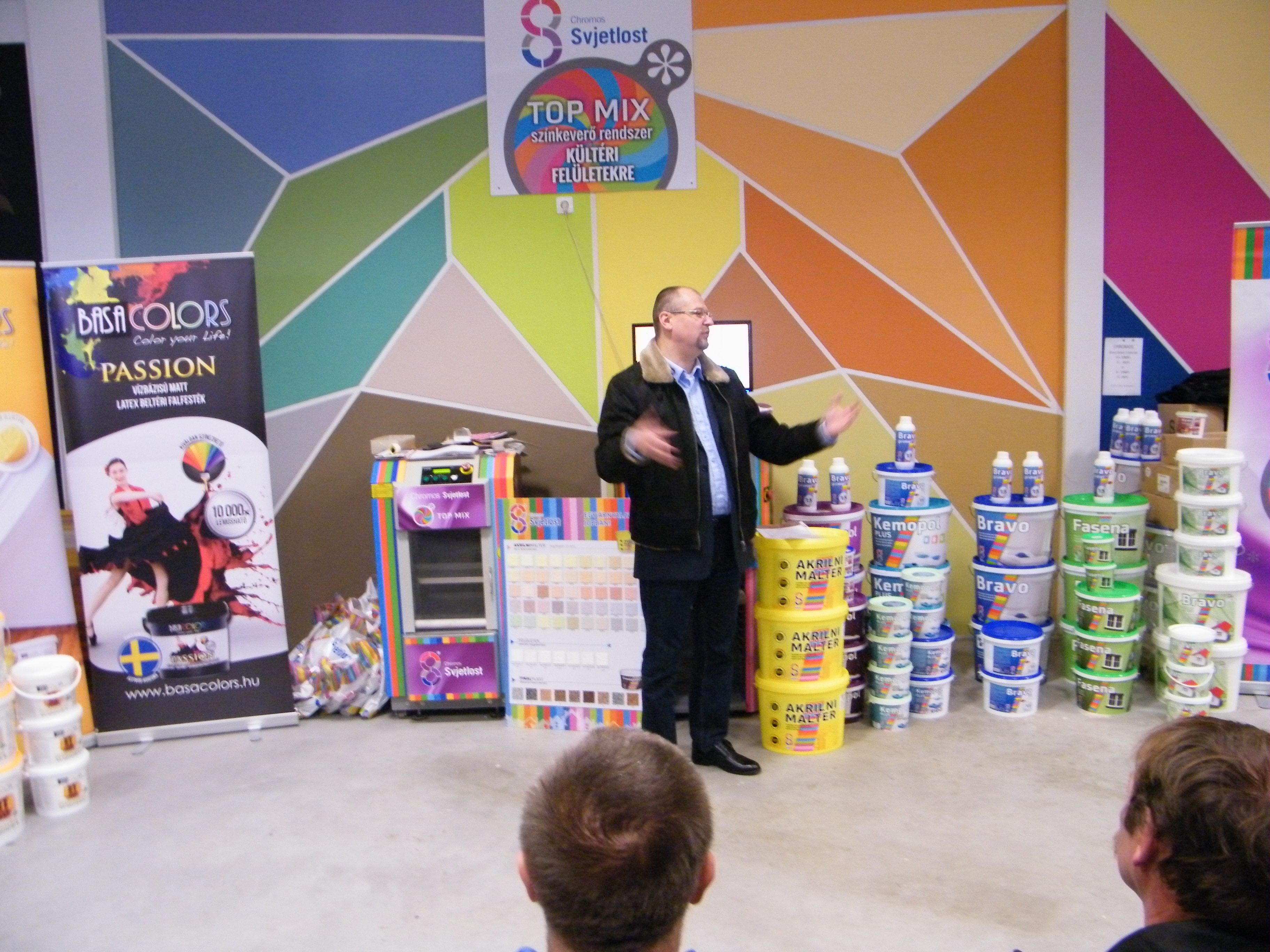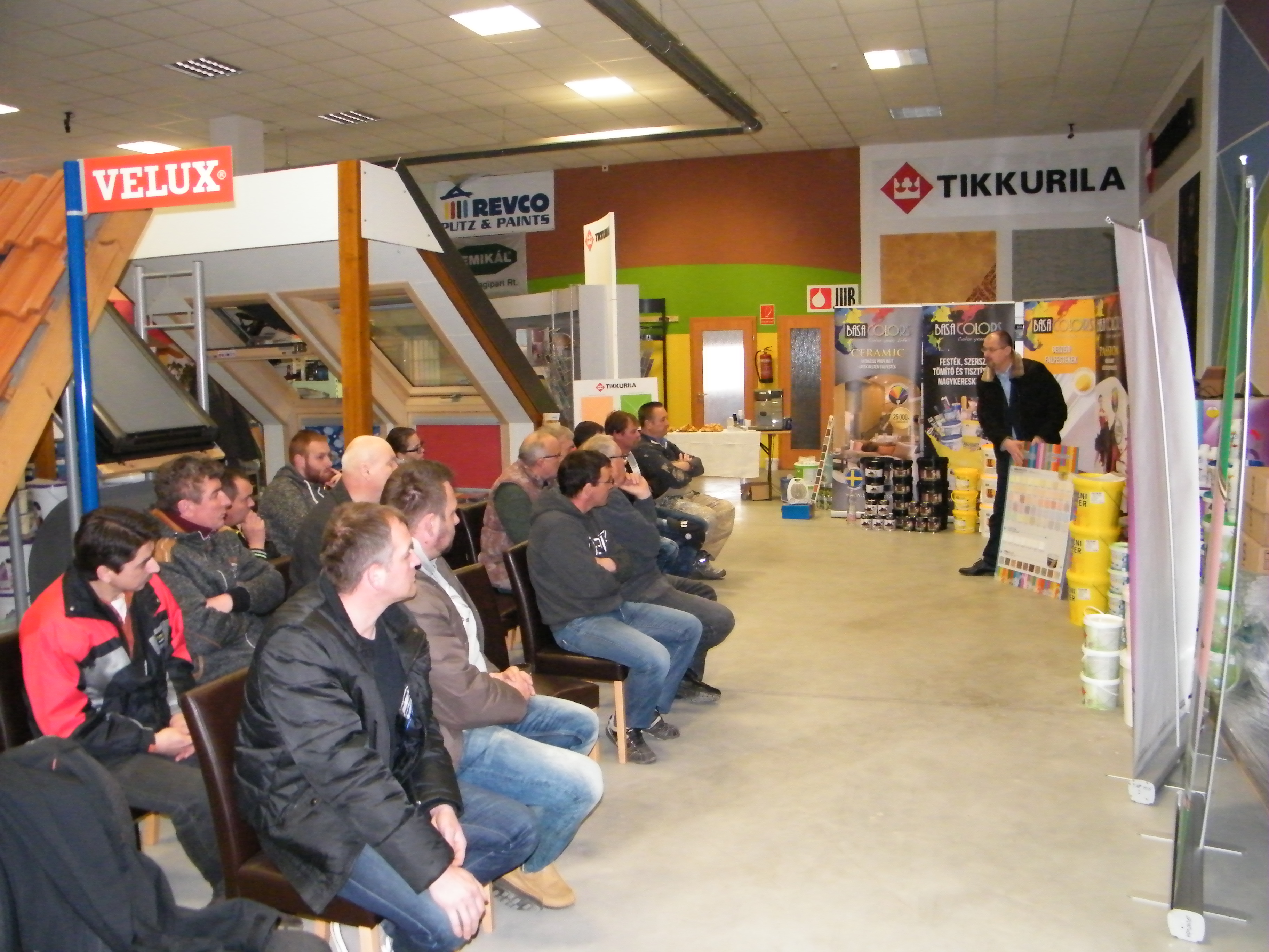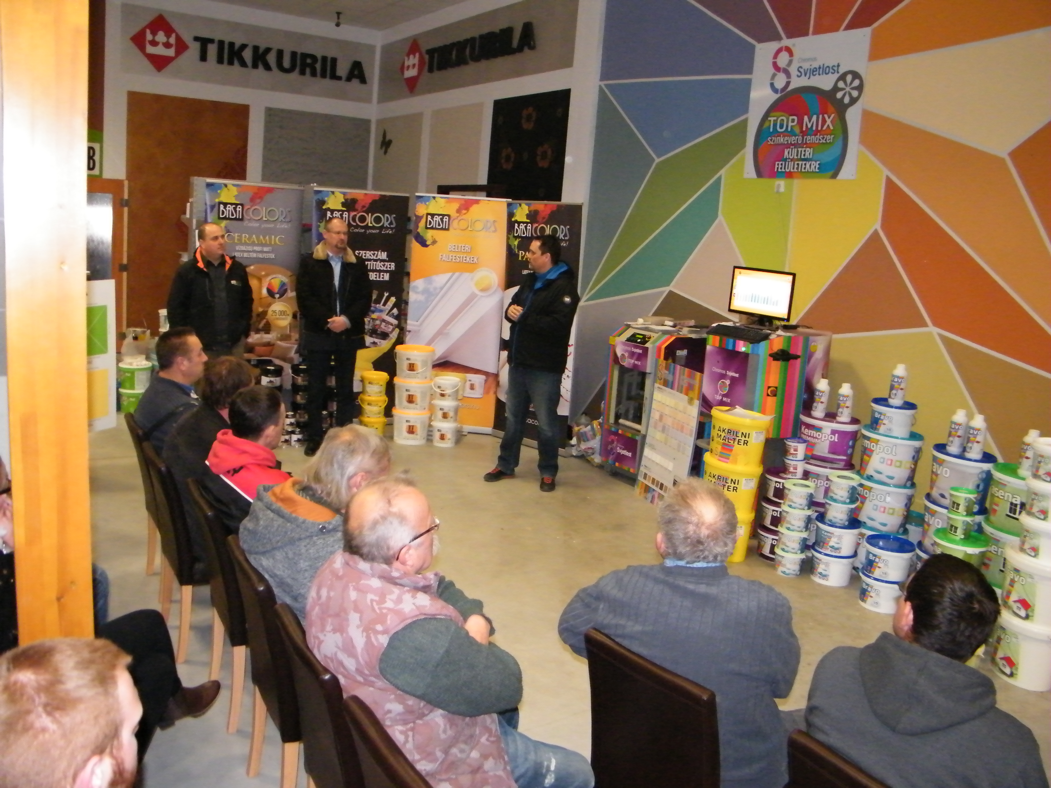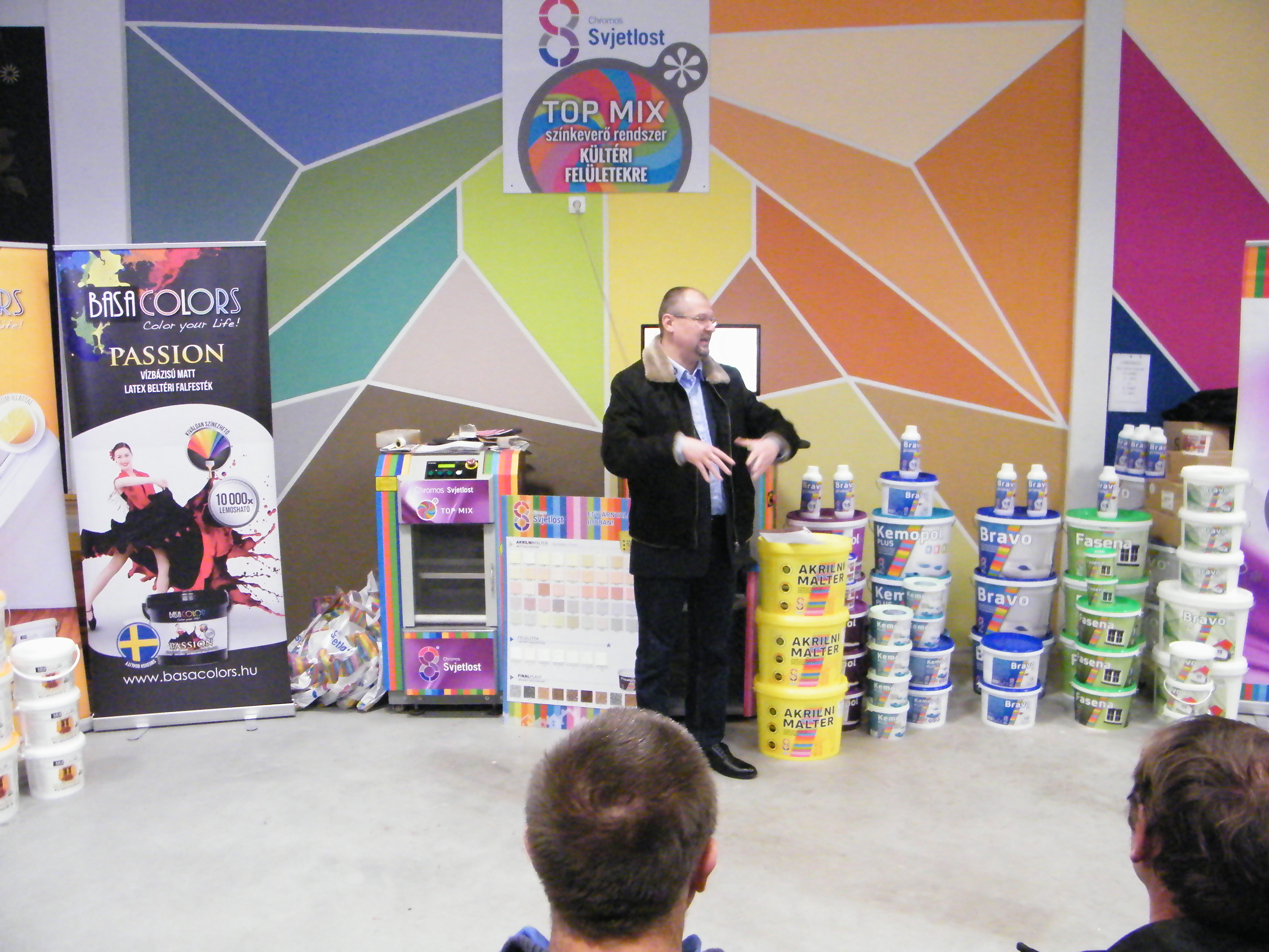 A találkozó nagyon jó hangulatban telt, mely köszönhető elsősorban Havér Tamásnak a Chromos képviselet vezetőjének, aki lendületes, és rendkívül érdekes szakmai bemutatót tartott, melybe bevonta a jelen lévőket is, ezáltal magával ragadva őket a Basacolors és a Chromos világába.