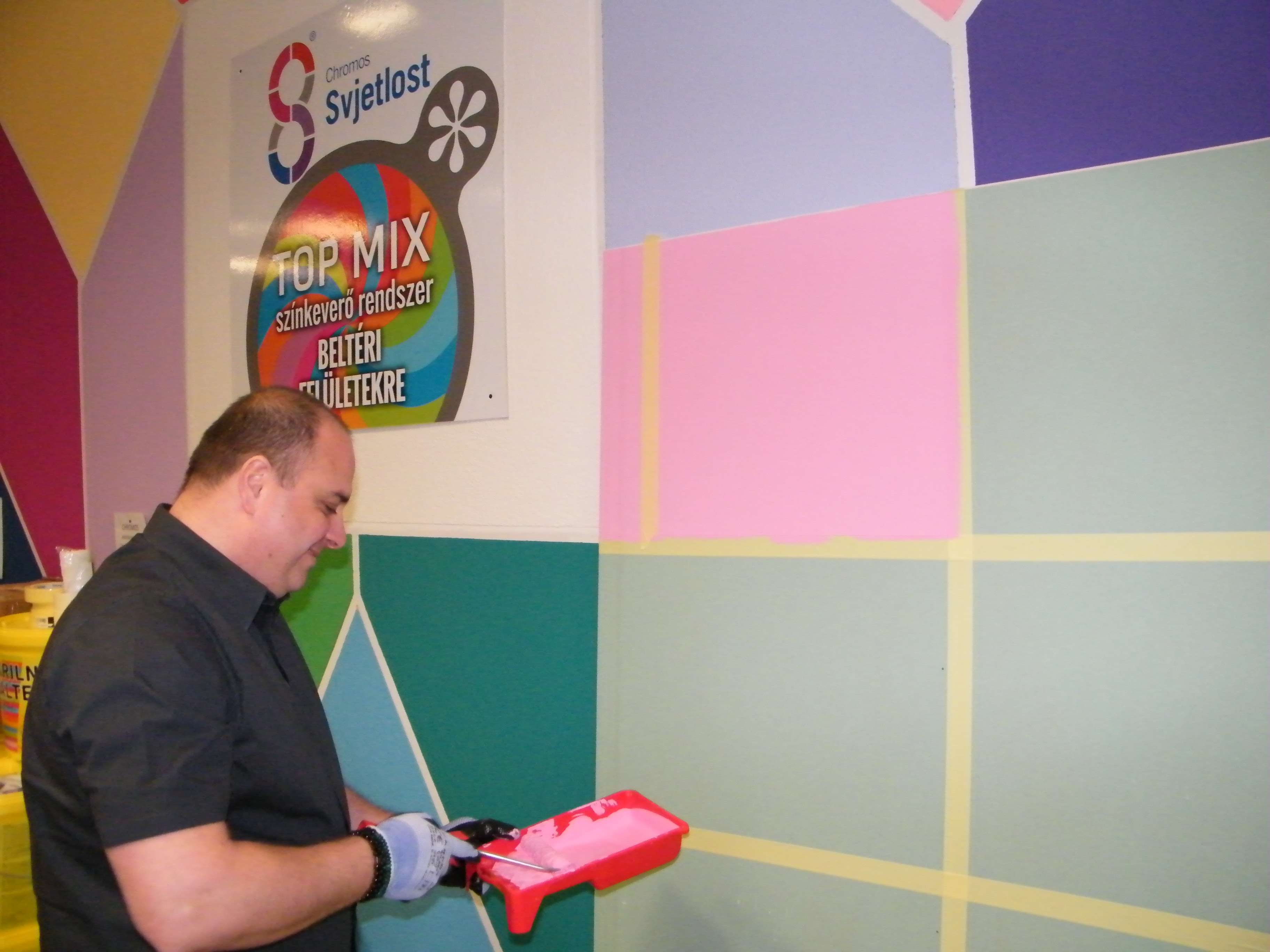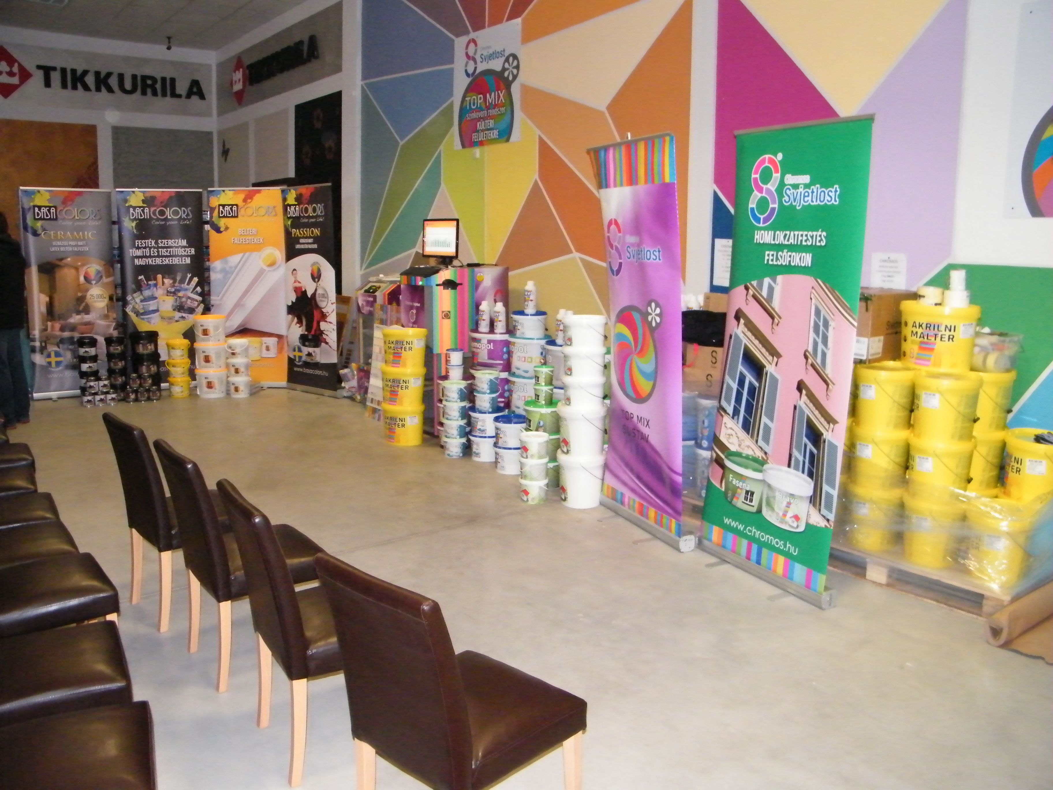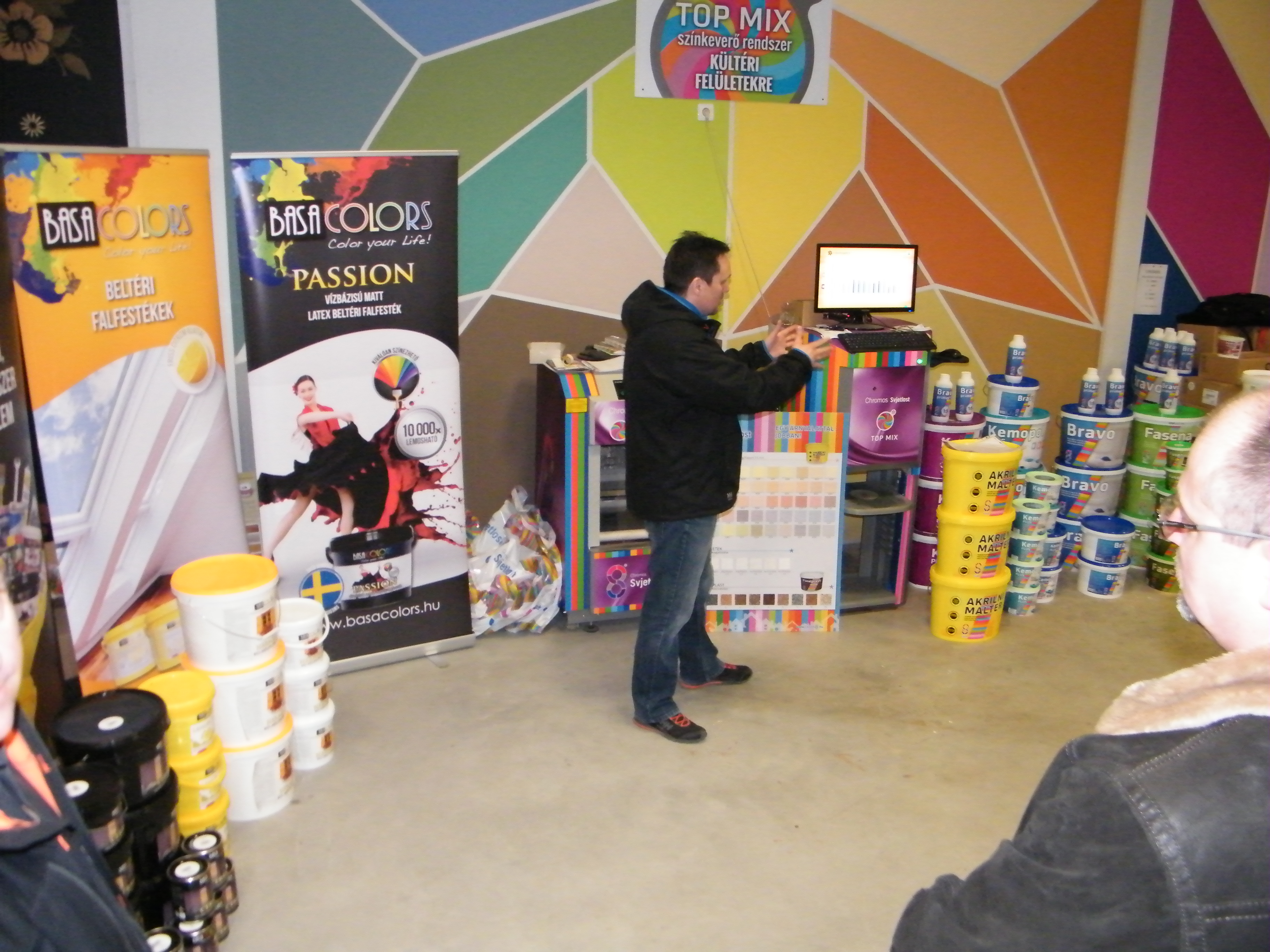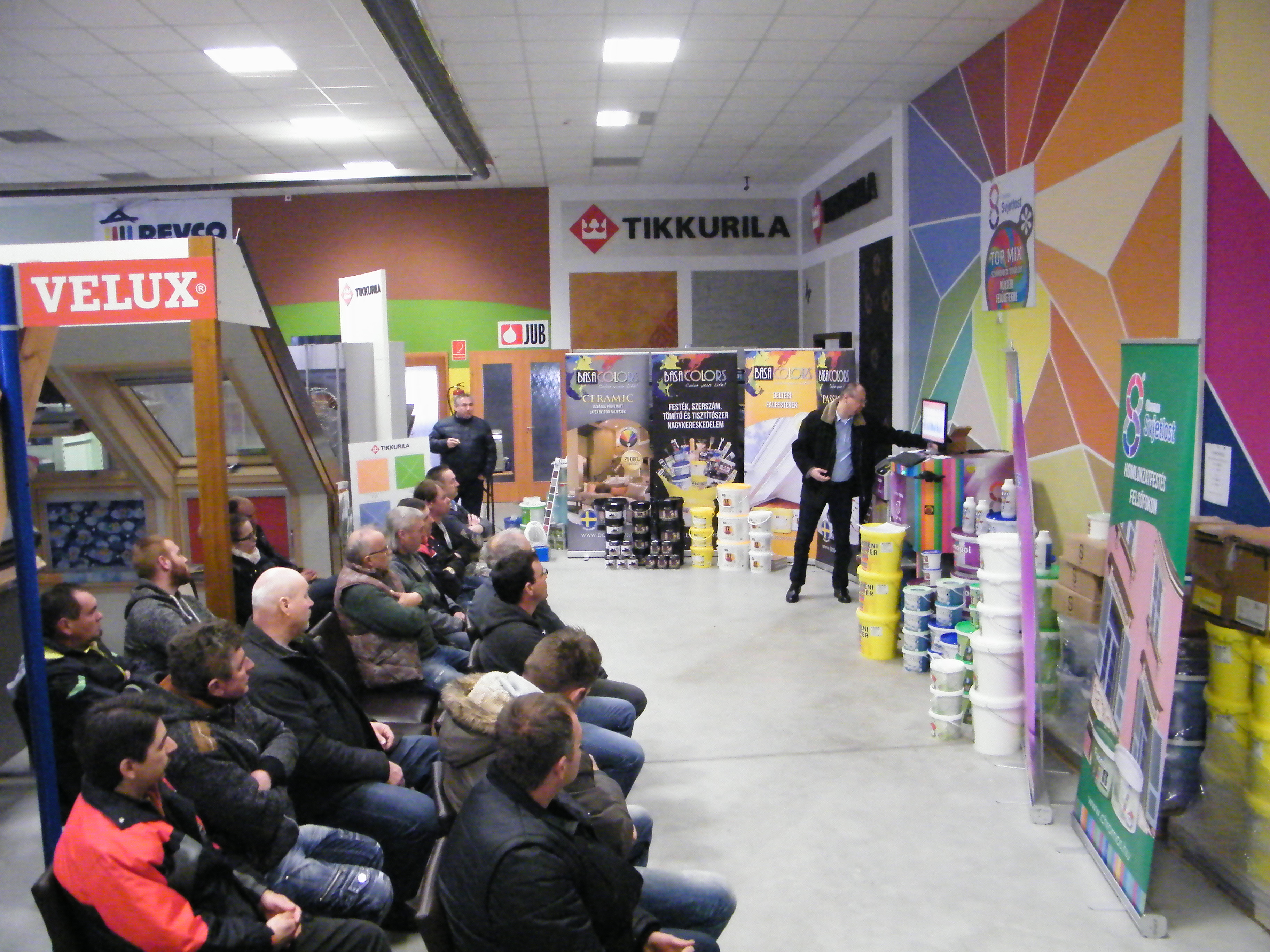 A találkozó nagyon jó hangulatban telt, mely köszönhető elsősorban Havér Tamásnak a Chromos képviselet vezetőjének, aki lendületes, és rendkívül érdekes szakmai bemutatót tartott, melybe bevonta a jelen lévőket is, ezáltal magával ragadva őket a Basacolors és a Chromos világába.