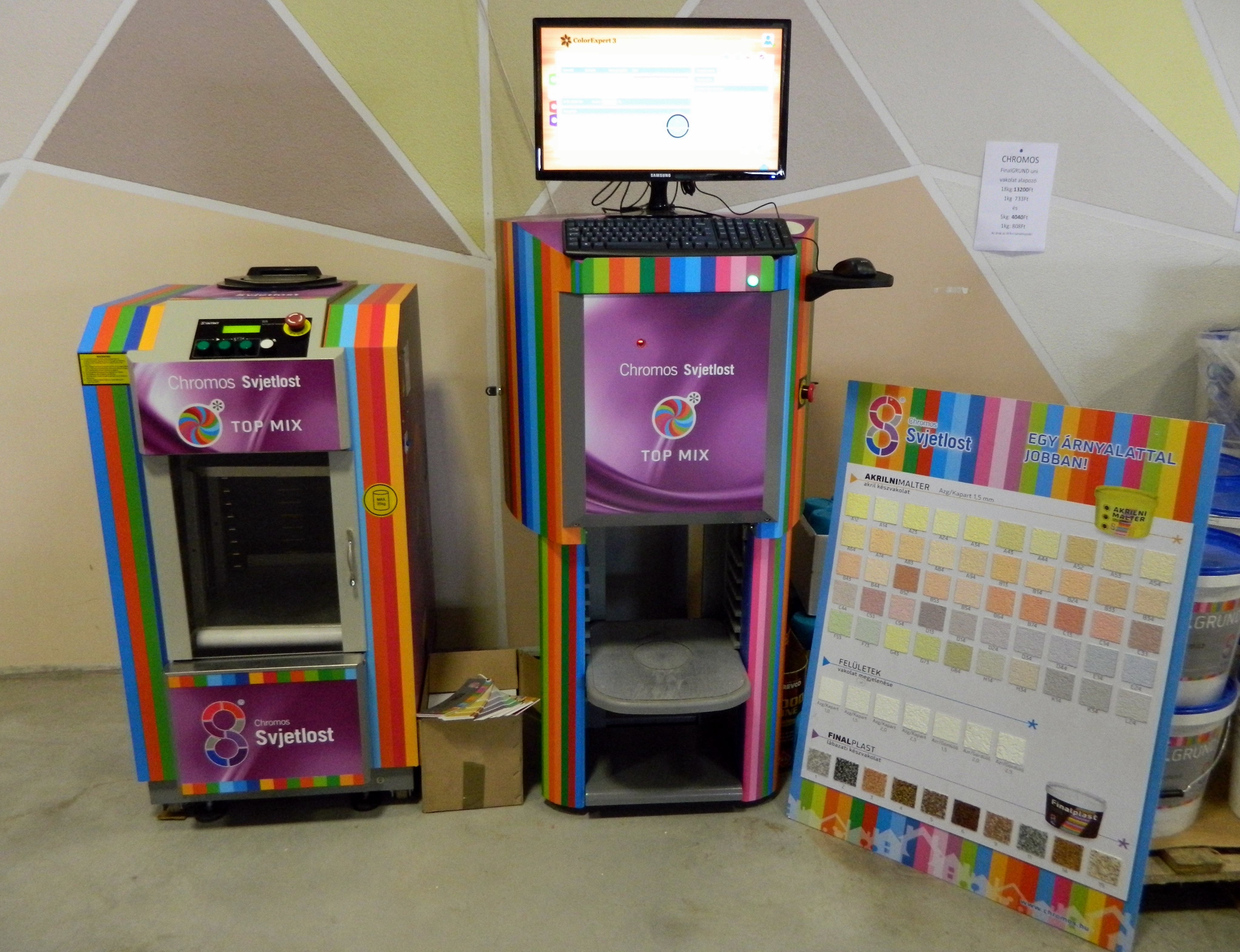 Barkácsáruzunk új forgalmazója, a Basacolors révén új színkeverő géppel rendelkezik a Molnár Fatelep. A horvát Chromos Svjetlost TOP MIX színkeverő rendszere került telepítésre Barkácsáruházunkban.