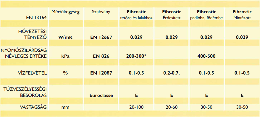 A homogén sejtszerkezet miatt, a FIBROSTIR nyomószilárdsági értékei igen jók. Ezért födémekben és lapostetők hőszigetelésénél egyaránt alkalmazható.