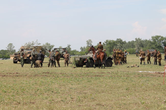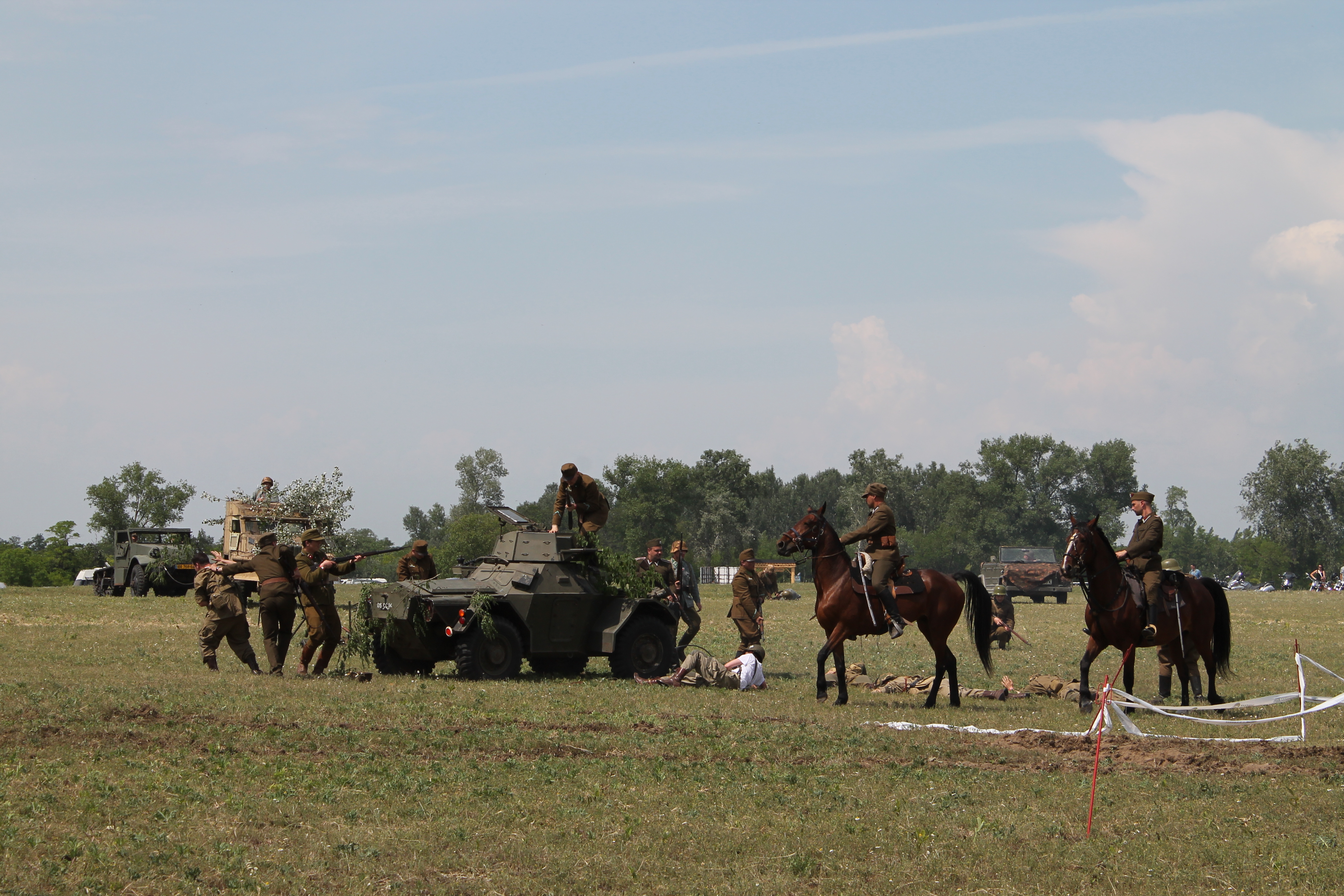 A tanulságos előadás után a csapat nagyobb része az első világháborús csata helyszínére igyekezett. A harcot korhű öltözet és fegyverzet tette tökéletessé, valamint az, hogy a légtérben feltűnt egy PO-2-es repülőgép is.