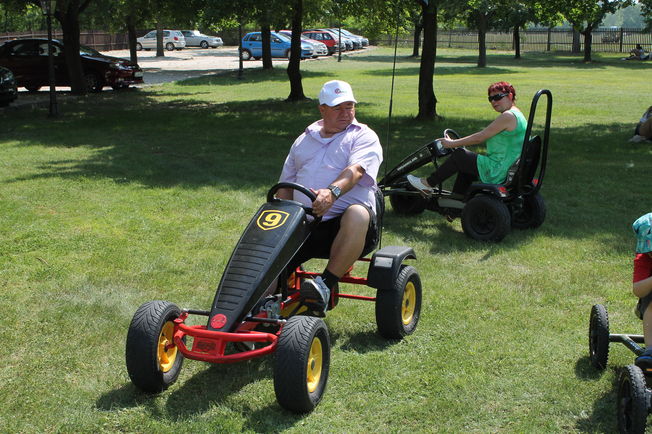 A világháborús csata után könnyedebb program, terepgokartozás következett. A lábbal hajtott gokartokat hamar birtokba vette a csapat. Főleg a gyerekek élvezeték ezt a programot és a Biczó Csárda parkosított területén rótták a köröket, nem kímélve a terepet és a járműveket sem.